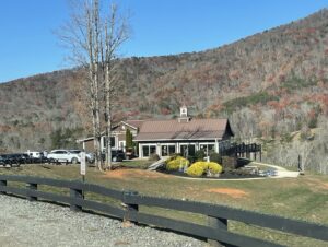 The Cottage Winery was not on our original itinerary but was recommended to us after another winery we wanted to visit was closed for Thanksgiving week. The property is beautifully situated on a hillside with views of the vineyards and mountains. You couldn’t ask for a more scenic setting. They have two tasting rooms joined by a massive deck, and areas below for cornhole and other games for the families.