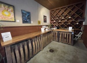 We always have a wonderful experience here. Autumn usually pours for us and is the most friendly, gracious host. Fallbrook Winery offers outdoor patio and deck seating with beautiful vistas, or cozy tastings in the main tasting room, as well as deeper into the “cave” which has bar height tables. You can reach out to them and set up a private tasting in the back of the cave, which will probably accommodate a group of 15-20. They do not sell food, unless there’s a pop-up vendor visiting, but you’re welcome to bring your own munchies.