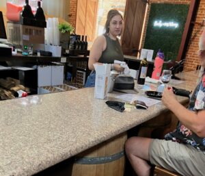 This was the first open tasting room we saw as we entered (it’s the first one on the left) through the main doors. There’s a large central server station/tasting bar as you enter; tables toward the rear of the room. There were a couple of groups sitting at the tables in the back. We sat at the tasting bar. They don’t have pre-selected tasting flights, you pick you selections from a larger list. The server was great. She made some suggestions of wines I might like, based on our conversation. Had a nice conversation with a guy sitting near us at the bar (a member who was making a pickup, and having some wine while he was there). Brought home a bottle of a nice petite Sarah.